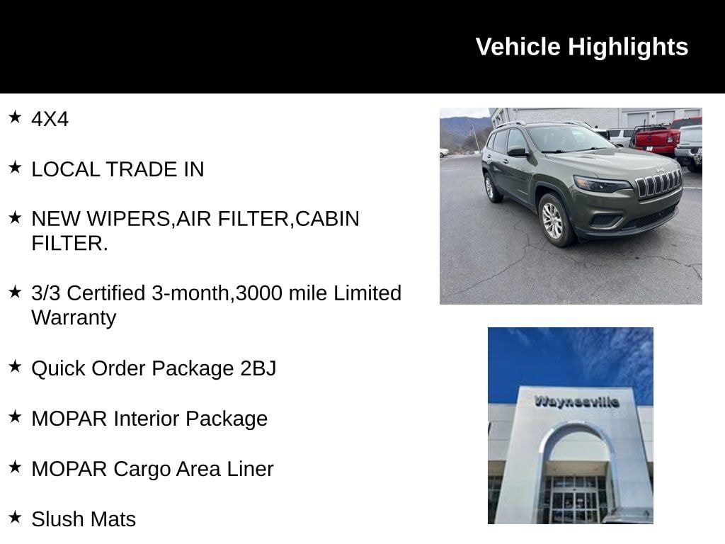 Discover the perfect blend of capability and style with this 2021 Jeep Cherokee Latitude. Boasting a striking Green exterior and a spacious, well-appointed interior, this versatile SUV is ready to take on any adventure.