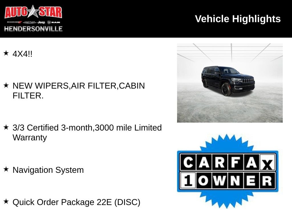 Elevate your driving experience with the 2023 Jeep Wagoneer Base. This exceptional SUV combines uncompromising capability, cutting-edge technology, and refined luxury, making it the ultimate choice for those who demand the best. Visit our showroom today and let us demonstrate why the Wagoneer is the perfect vehicle for your lifestyle.