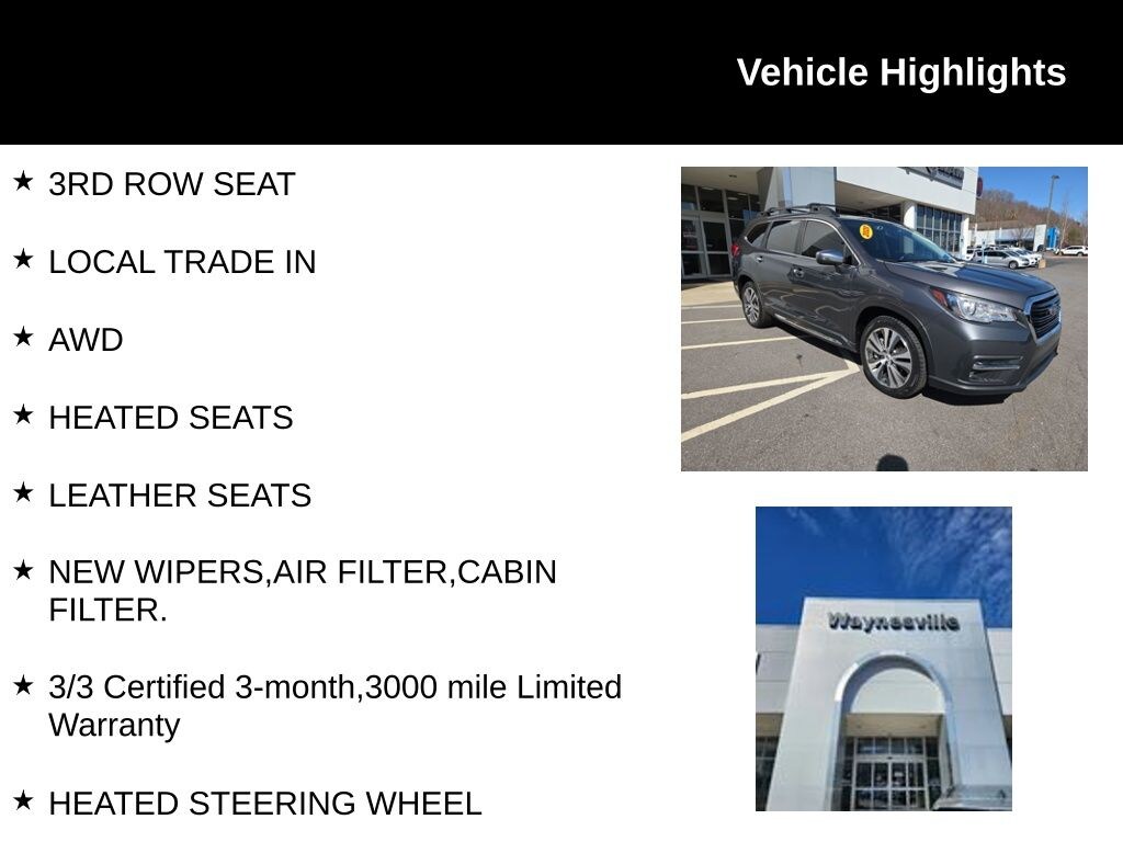 This meticulously maintained Ascent Touring is brimming with premium features that elevate your driving experience. Enjoy the convenience of a Power Liftgate, the comfort of Heated and Ventilated Front Bucket Seats, and the added security of Subaru's STARLINK Safety and Security system. The stunning 8" Multimedia Navigation System, coupled with the premium harman/kardon® sound system, will keep you entertained and connected on every journey.